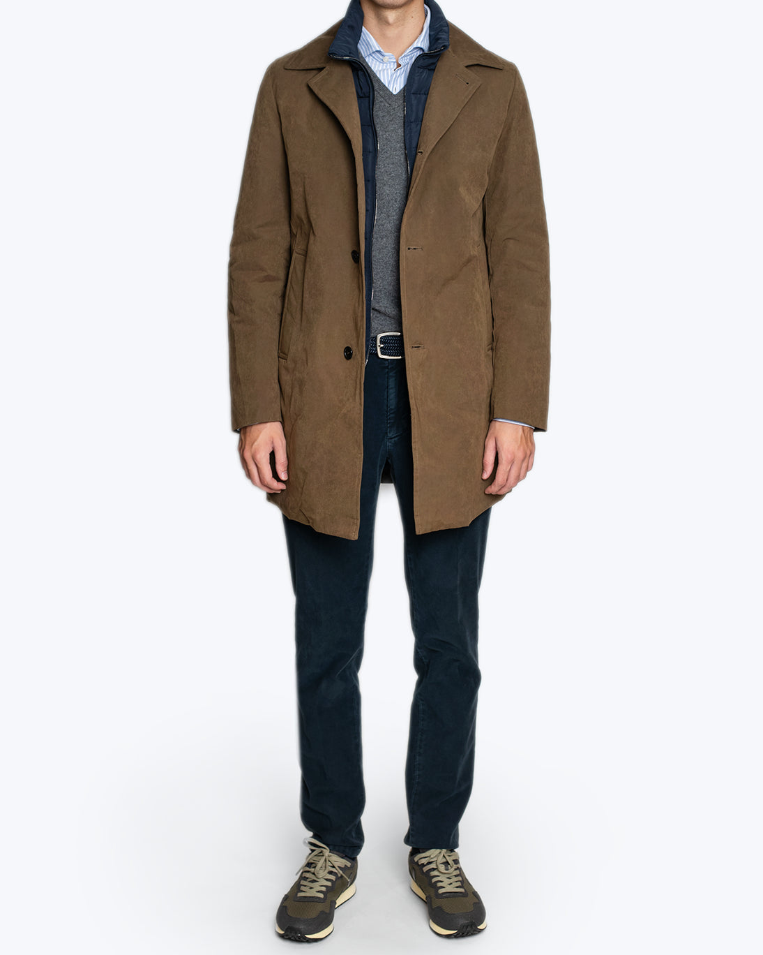 Gabardina repelente al agua, de color verde de la marca Zerosettanta,