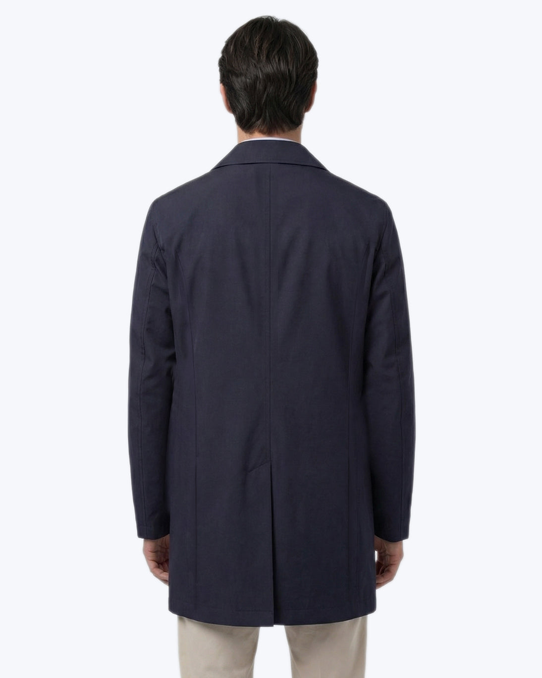 Cuenta con cierre de botones ocultos bajo tapeta, dos bolsillos laterales insertados y un bolsillo interior para mayor funcionalidad y manga larga acabada en puño con botón automático. La abertura central trasera aporta comodidad y libertad de movimiento.