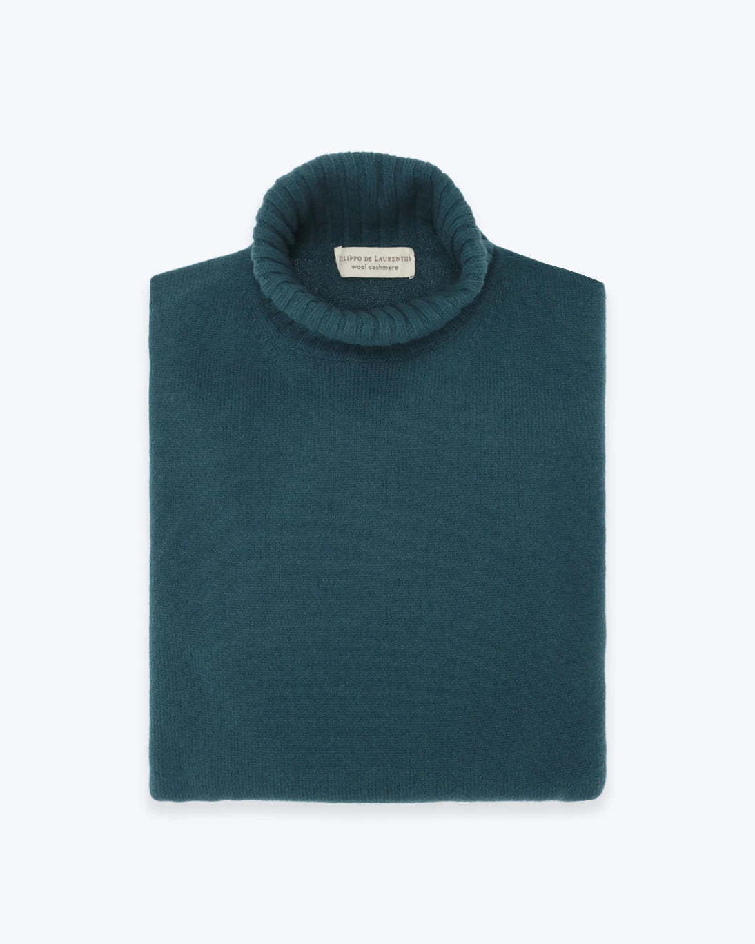 Jersey de cuello alto de la marca Filippo de laurentis en color azul.