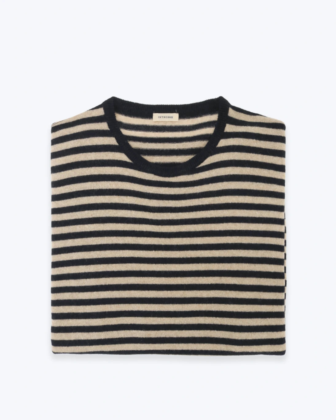 Jersey de rayas beige y navys con el cuello redondo de la marca INTHEBOX.