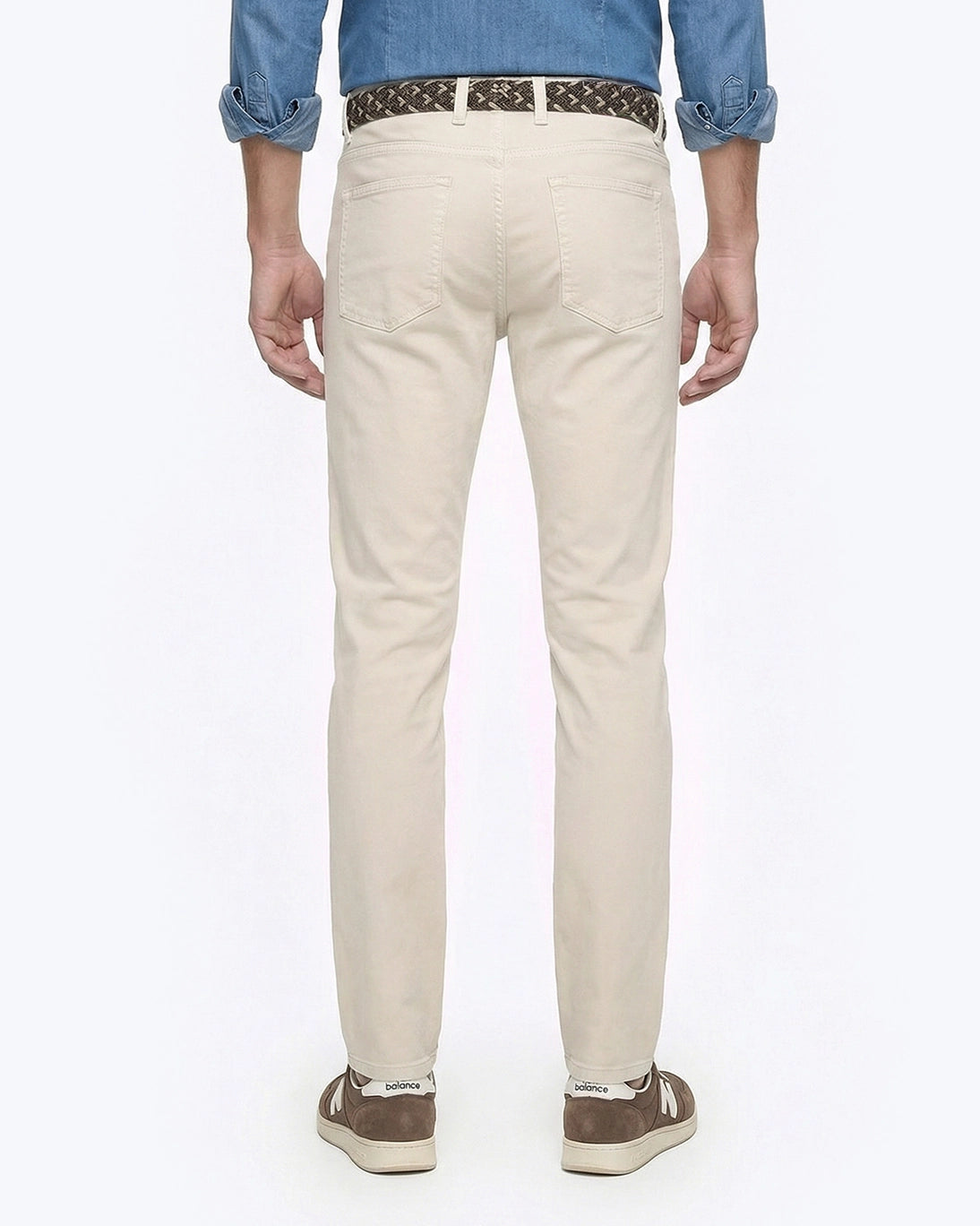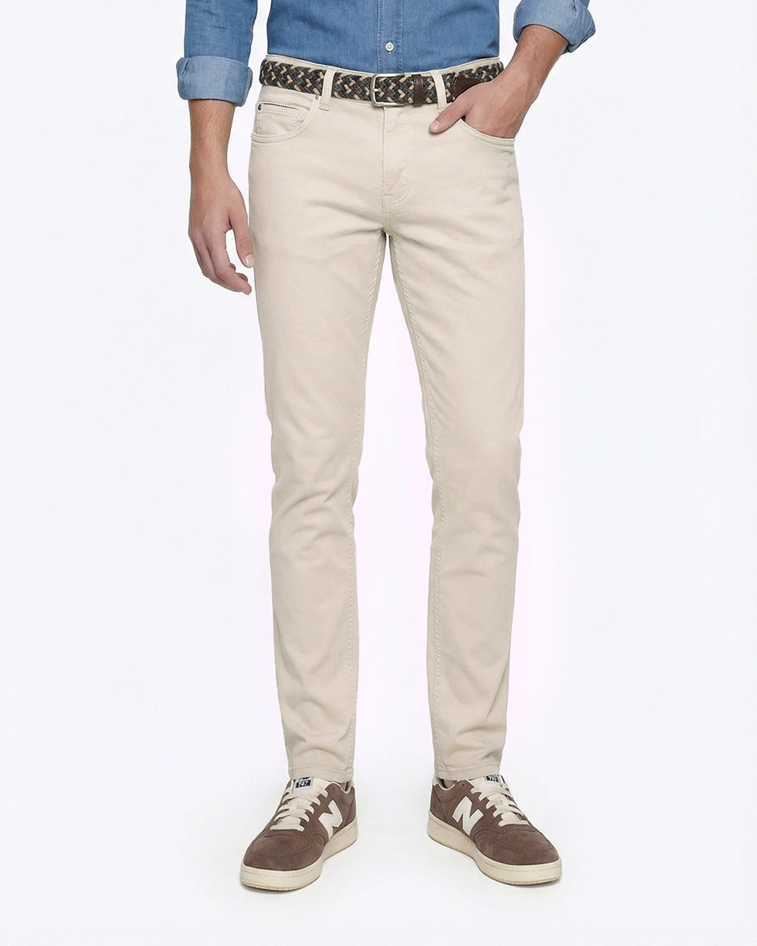 Pantalón de 5 bolsillos en color beige de la marca Tway. Su diseño slim fit con pernera recta aporta un ajuste moderno que estiliza la figura sin comprometer la comodidad.