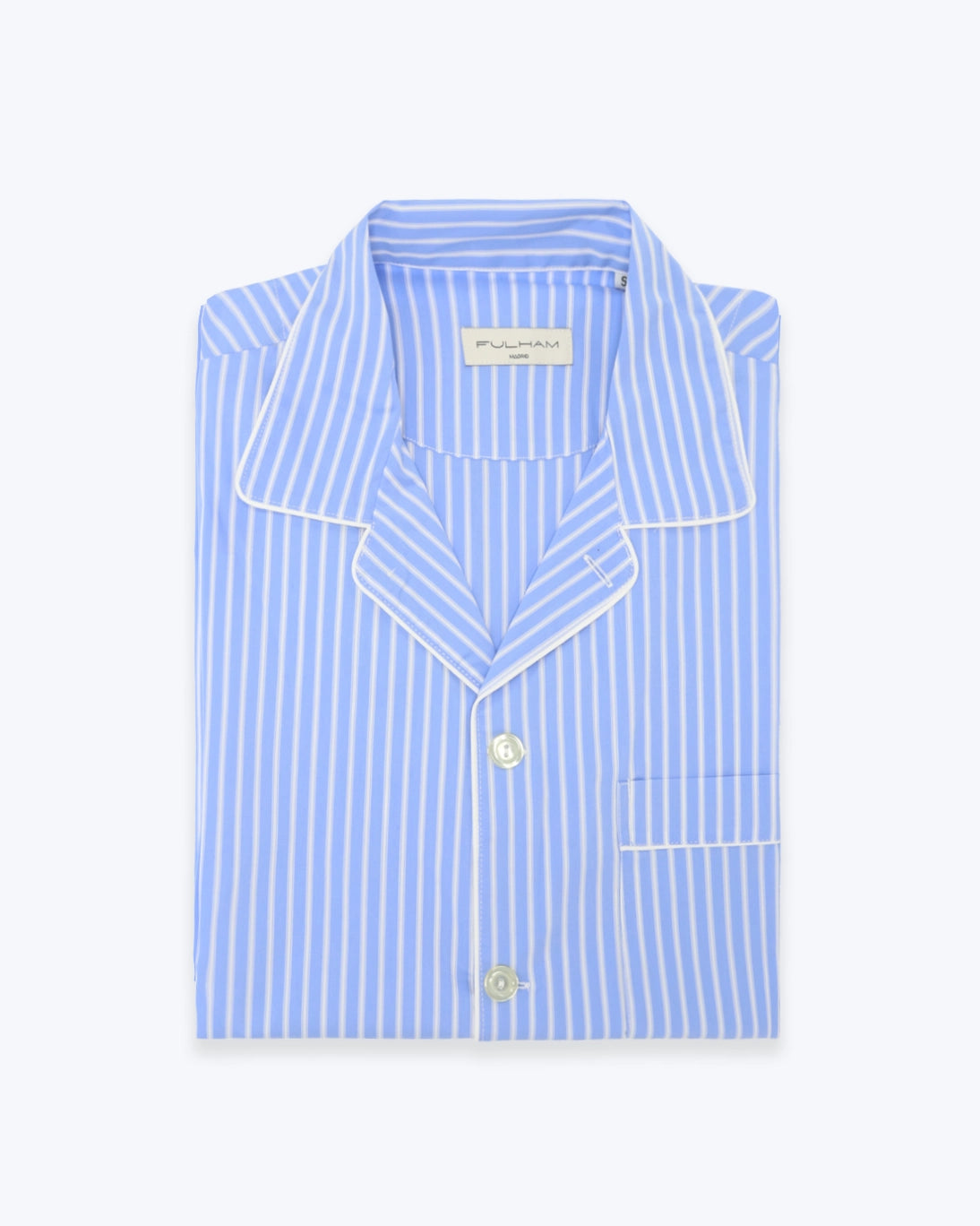 Piajama de color azul con rayas blancas, de la marca Fulham.