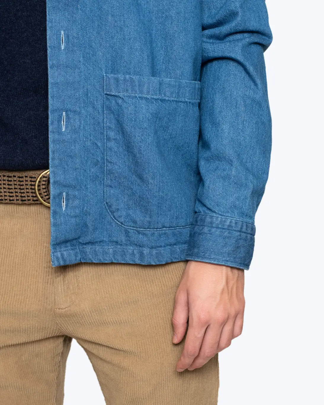 Tiene dos bolsillos delanteros de plastrón, a la altura de la cadera, y un bolsillo con cierre abotonado a la altura del pecho.